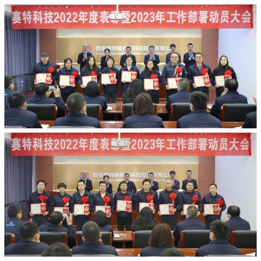 最后,杜明煥董事長做了總結(jié)講話,他對賽特公司2022年度的發(fā)展成績給予了高度肯定,對全體干部職工在過去一年里付出的辛勤勞動致以最誠摯的問候,對所有受表彰的先進集體和個人表示熱烈的祝賀。他指出,公司經(jīng)過多年的積累,基礎(chǔ)工作已經(jīng)取得長足的進步,干部隊伍得到了較大的發(fā)展,產(chǎn)品研發(fā)也取得了驕人的成績,時至當下,全體賽特人一定要咬定青山不放松,花大力氣釋放現(xiàn)有產(chǎn)能,提高產(chǎn)量,擴大銷量,大力推進渭北項目建設(shè),盡快建成完整的產(chǎn)業(yè)鏈,以時不我待的精氣神堅決完成2023年各項指標任務(wù)。他強調(diào),事業(yè)好不好,主要看干部,希望全體干部以高度的事業(yè)心、責任心,滿懷激情的主動投入到公司大發(fā)展的進程中,不負青春不負年華。他強調(diào),賽特公司作為西北有色金屬研究院的公司,一定要時刻肩負國之大者,勇于扛起國家使命,真正的擔負起國家擔當,為我國稀有金屬材料產(chǎn)業(yè)貢獻力量。