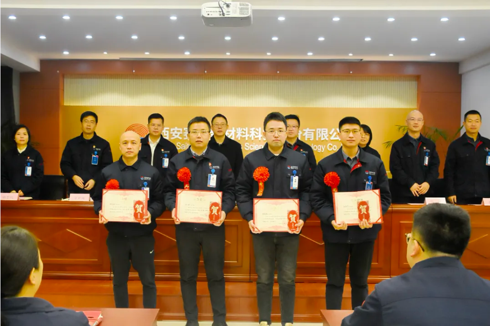 上午10時(shí),賽特公司2024年度表彰大會(huì)在雄壯的國歌聲中正式拉開序幕。白新房總經(jīng)理宣讀表彰決定,表彰了2024年度取得突出成績的先進(jìn)集體3個(gè),優(yōu)秀干部4名、先進(jìn)個(gè)人25名、質(zhì)量先進(jìn)集體2個(gè)、質(zhì)量先進(jìn)個(gè)人5名、保密先進(jìn)集體1個(gè)、保密先進(jìn)個(gè)人1名,安環(huán)先進(jìn)集體2個(gè),安環(huán)先進(jìn)個(gè)人4名以及最佳新人7名。