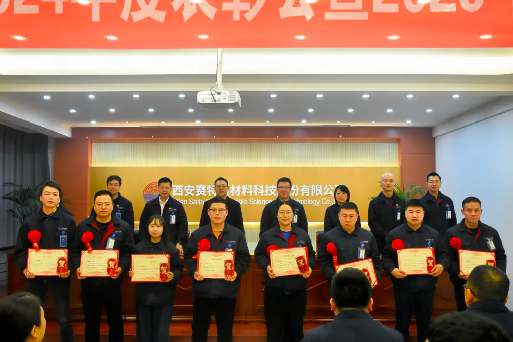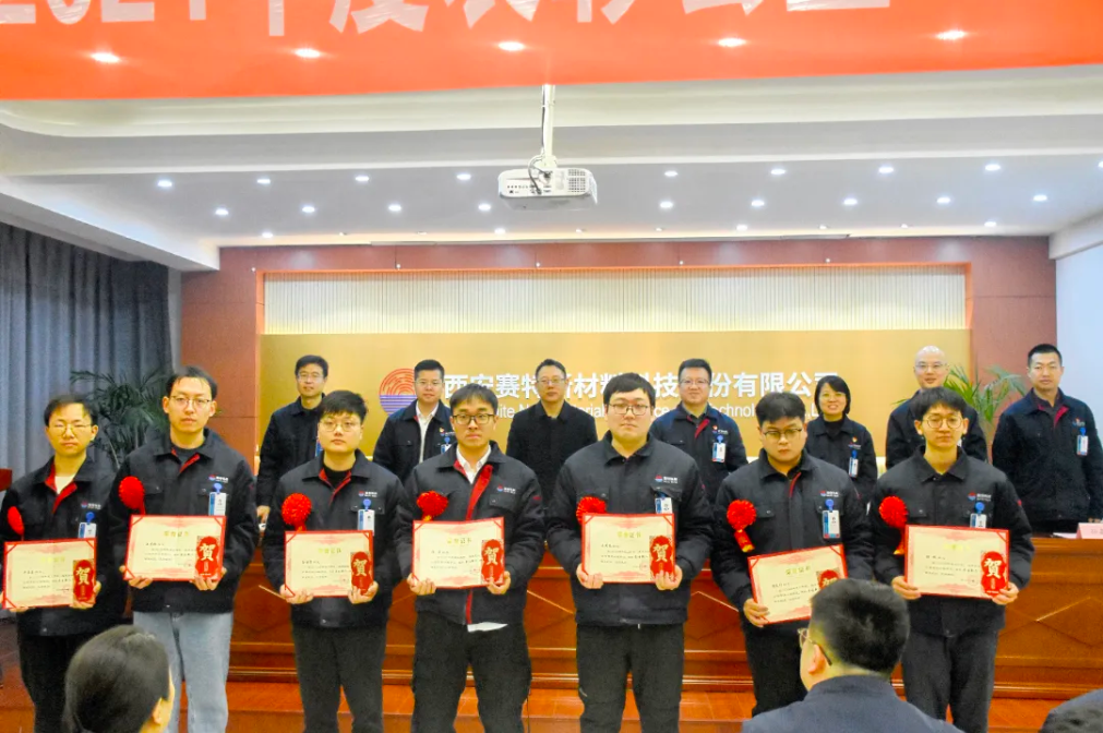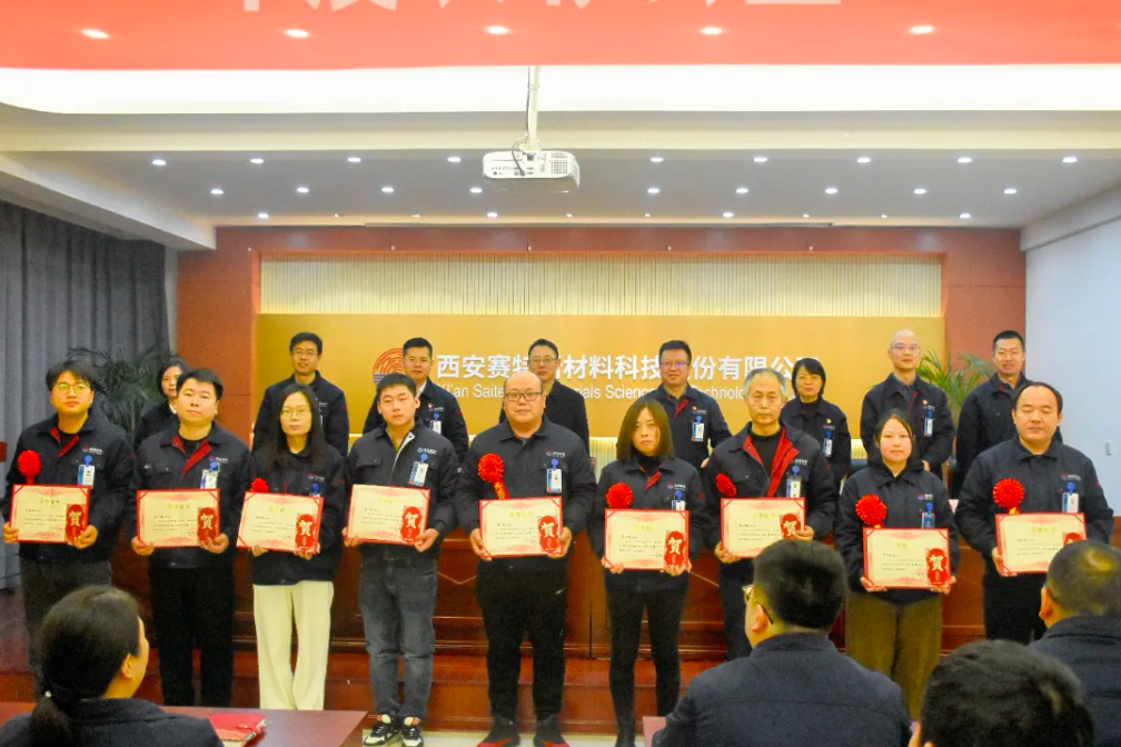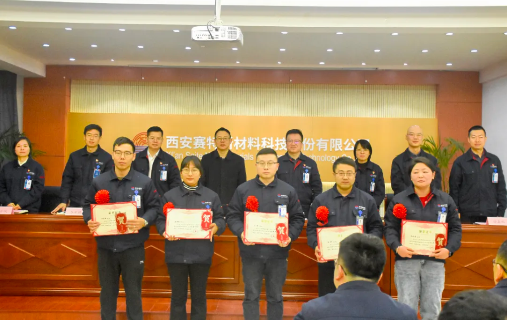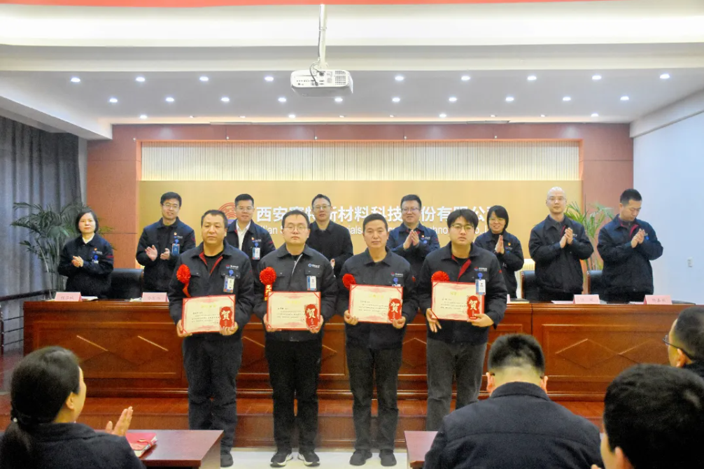 歲序更新,華章日新。1月23日,公司2024年度表彰大會(huì)暨迎新春年會(huì)在二樓報(bào)告廳隆重舉行。西北有色金屬研究院副院長張于勝,賽特公司經(jīng)營層,中層干部、職工代表及受表彰的集體和個(gè)人參加了會(huì)議。會(huì)議由楊曉康董事長主持。